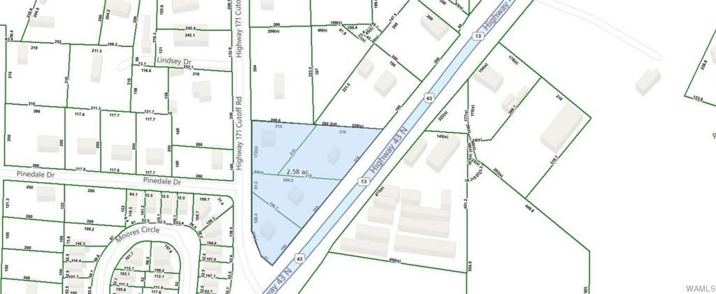 2.60 +/- acres with 565ft of frontage on Highway 43N. Approximately 2 miles from the Northport Civic Center. Perfect for retail, office, warehouse, ministorage, etc. Also available for lease, please inquire with listing agent for lease rate.