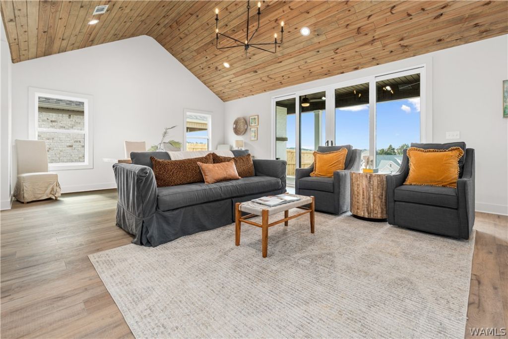 Move-in ready and waiting for you in Neptunes Cove! This beautifully finished single-level home sits on a spacious lot and welcomes you with a wide open living, kitchen, and dining area highlighted by a soaring tongue-and-groove ceiling, elegant lighting, and oversized sliding doors that flood the space with natural light. The kitchen impresses with quartz countertops, timeless cabinetry, a gas range with stainless appliances, and a large pantry. The primary suite features a generous walk-in closet, double vanities, and a luxurious tile shower with dual shower heads. Step outside to the covered patio with a gas-log fireplace overlooking your backyard, ideal for relaxing or entertaining. All of this is located in the highly sought-after Neptunes Cove community, offering lighted walking trails, a neighborhood lake, playground, and gazebo for everyday enjoyment.